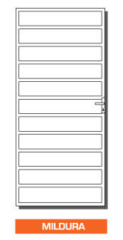 Eastern Security Doors offers an extensive range of Steel Doors, we use a Maxi 50 x 20 mm frame, heavy duty Hinges welded to the frame, Zinc shield coated and Powerdercoated using high quality Dulux powders.